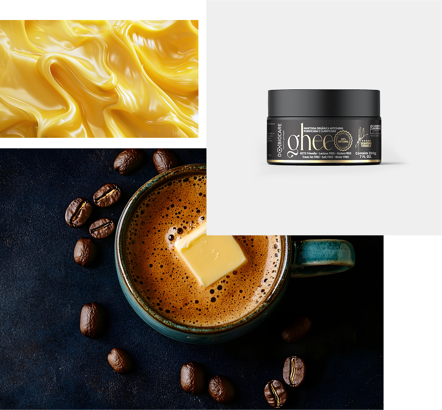 Nossa Manteiga GHEE é mais do que uma simples gordura – ela é um superalimento funcional. No DOXBURN, usamos a mais pura e premium versão da GHEE, garantindo um efeito energético limpo e eficiente.